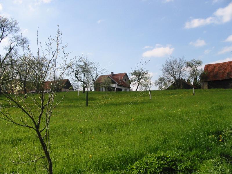 Jv. mírný svah tvrziště. Jádro je vlevo od čp.121