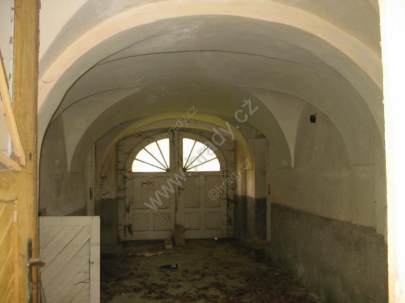 Sýpka jako součást tvrze a vjezd do dvora na vých.straně