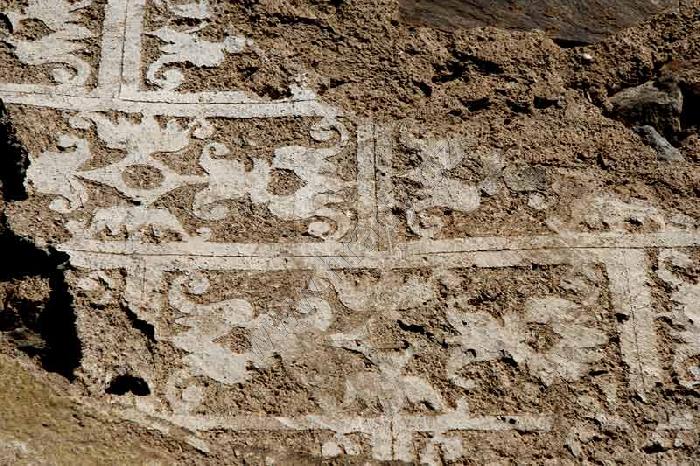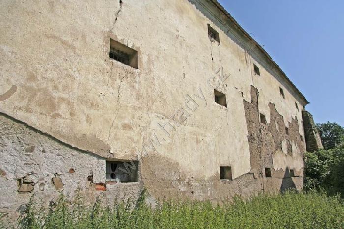 Zbytky sgrafitové výzdoby jsou již o poznání menší než na zveřejněných fotografiích z roku 1985