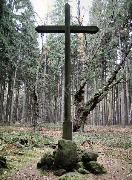 kříž a dvě staré lípy - jediné upomínky na zaniklou ves s kostelem