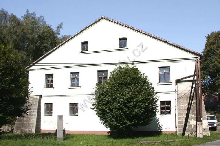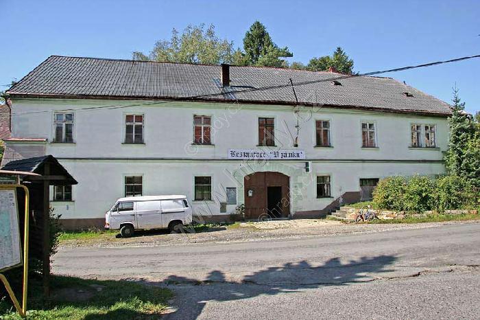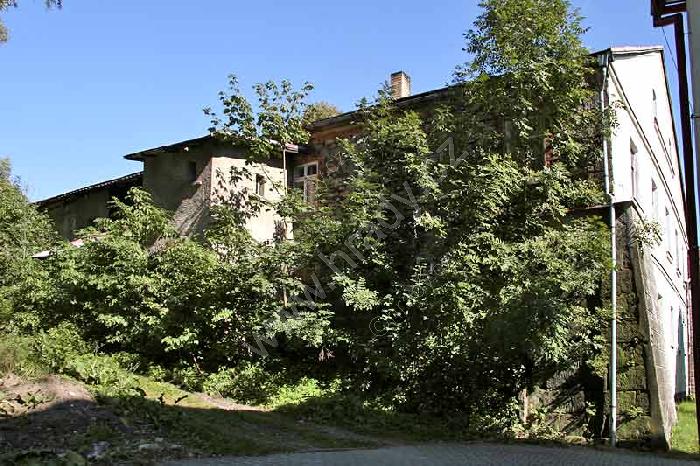 Krompach (Česká Lípa), výřez z katastrální mapy vsi z r. 1843. Západní křídlo bývalého poplužního dvora zaujímá budova bývalé tvrze, zatímco křídlo severní tvoří mladší zámek.