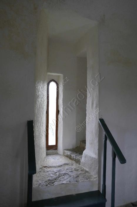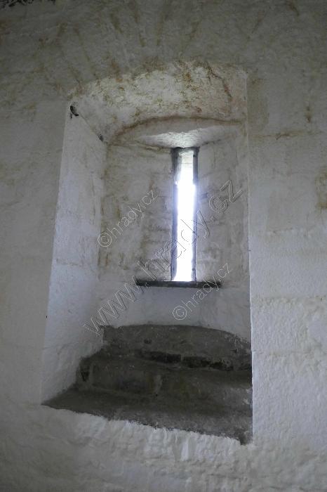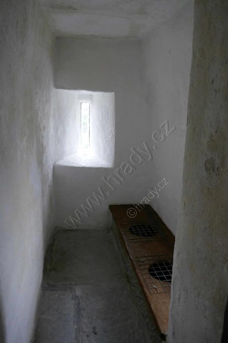Okno v prvním patře západní bašty se vstupem do latríny.
