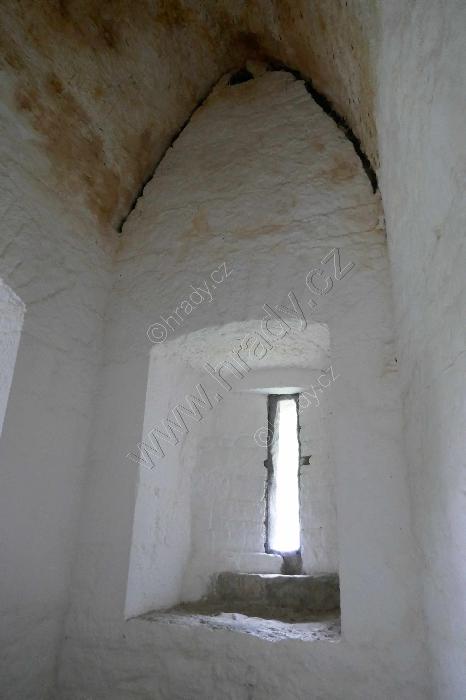 Valená hrotitá klenba v přízemí východní bašty s otiskem košatiny.