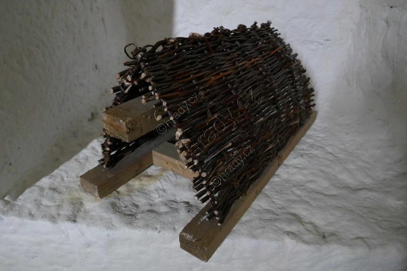 Model bednění s košatinou. Tento způsob bednění při stavbě kleneb se v Irsku rozšířil během 15. století. Starší klenby mají v Irsku otisky prkenného bednění.