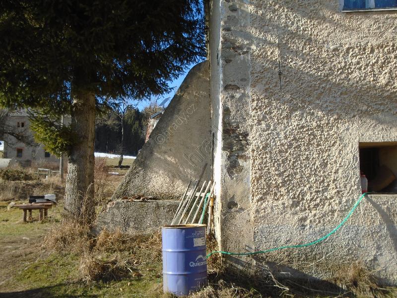 opěrný pilíř v nároží budovy, v níž je zachováno torzo středověké věže