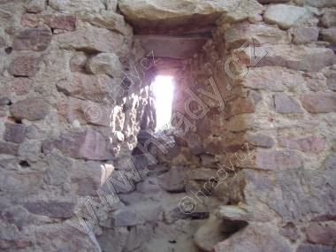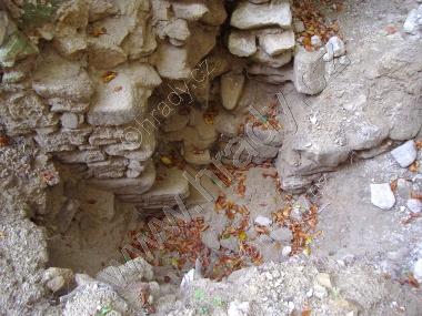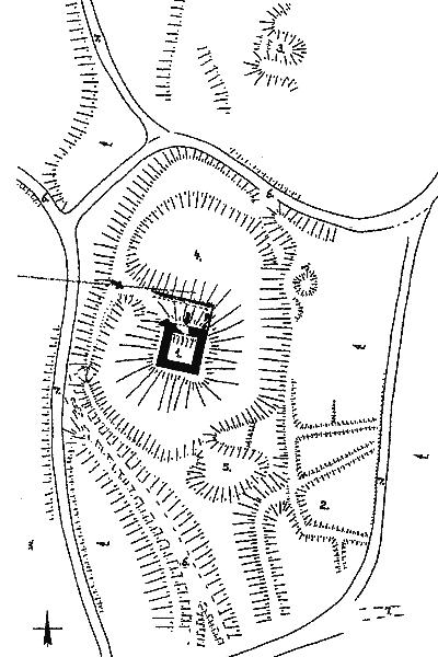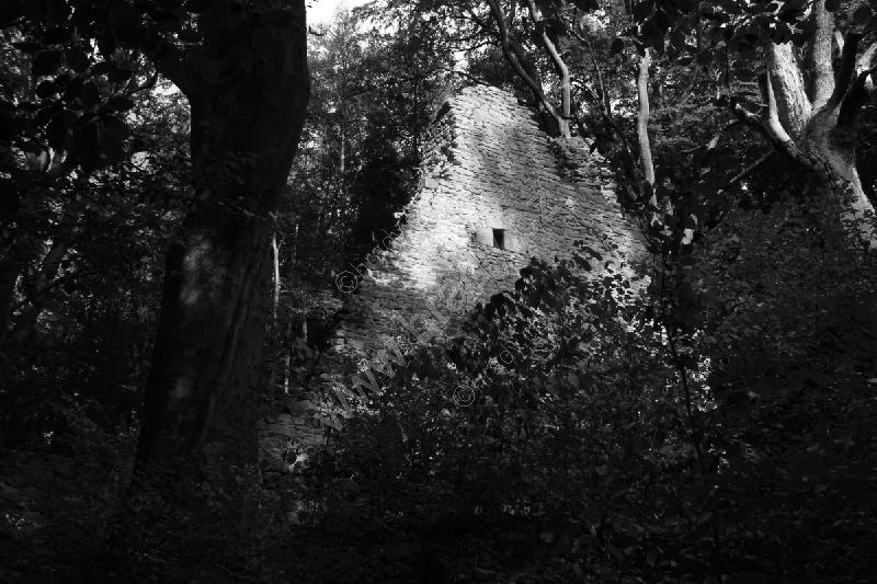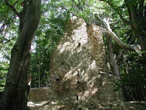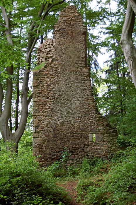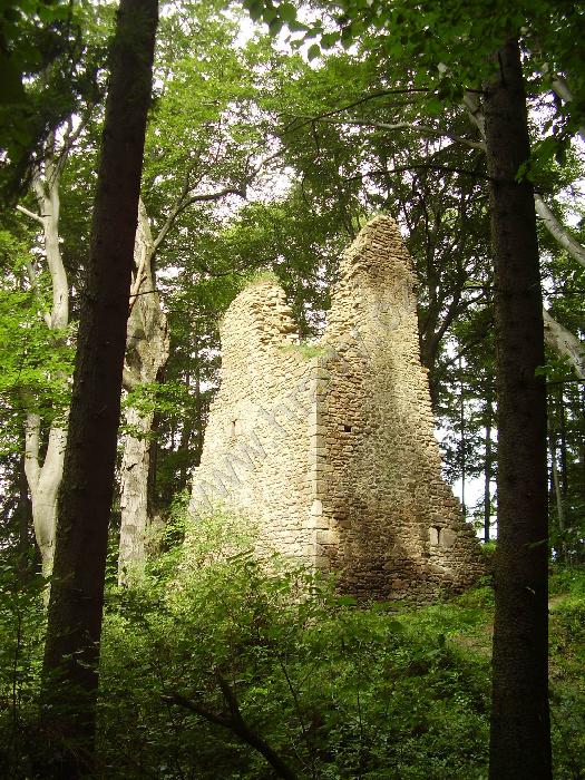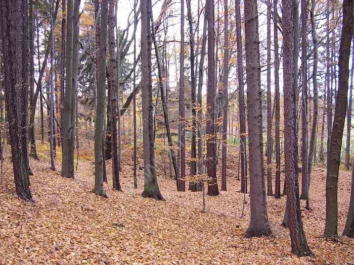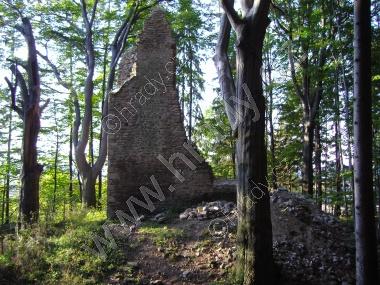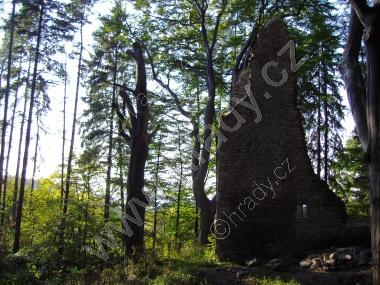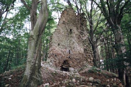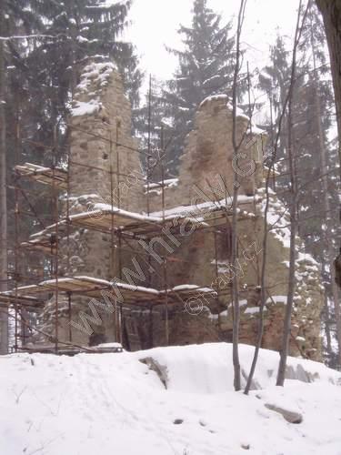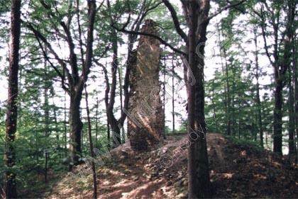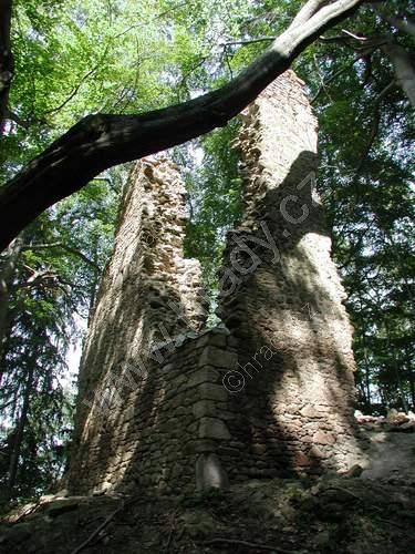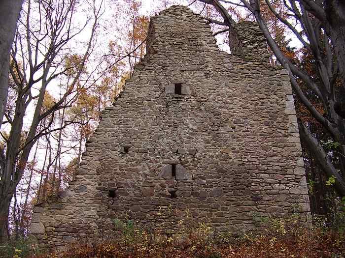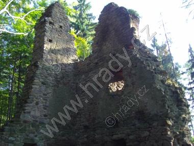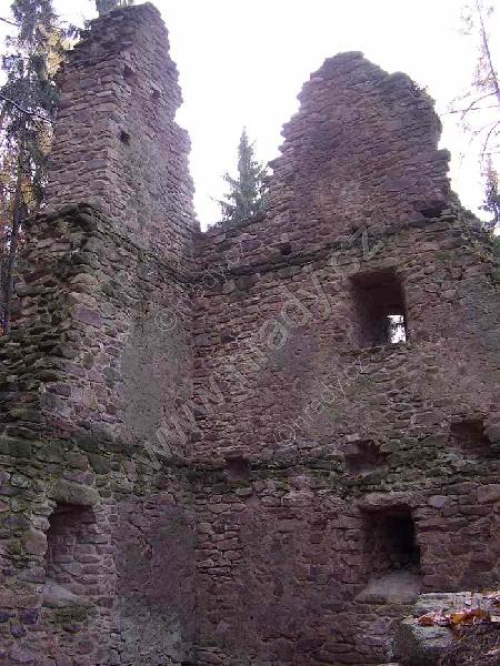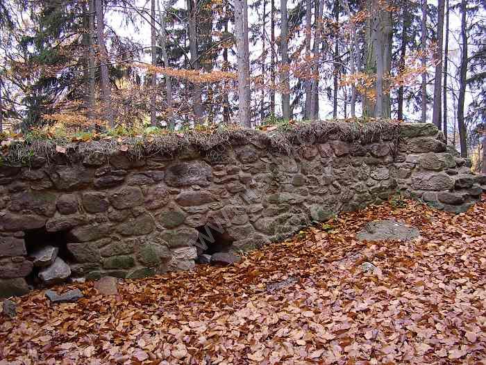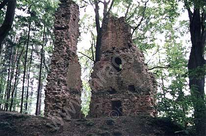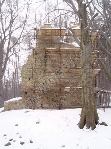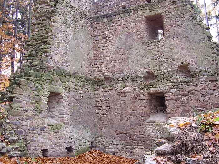 polozbořené jádro tvrze - se znatelnými kapsami po trámech