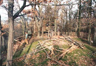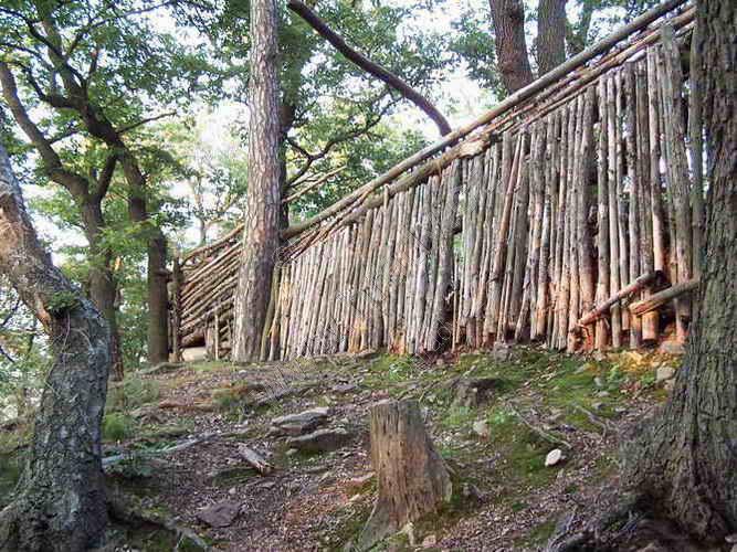po obvodu bývalého tvrziště dnes stojí chatrné dřevěné hradby