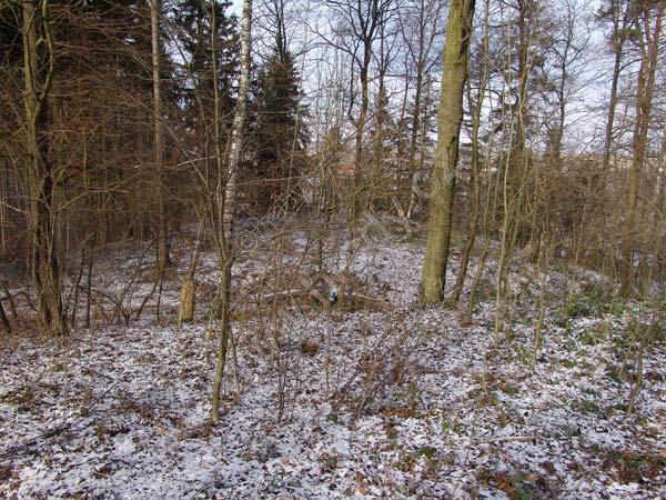 pohled na místo tvrze z přístupové plošiny na jv.