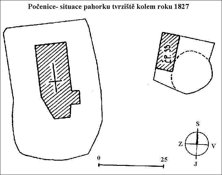 Někde v místě garáže, v popředí, stávala horní tvrz.