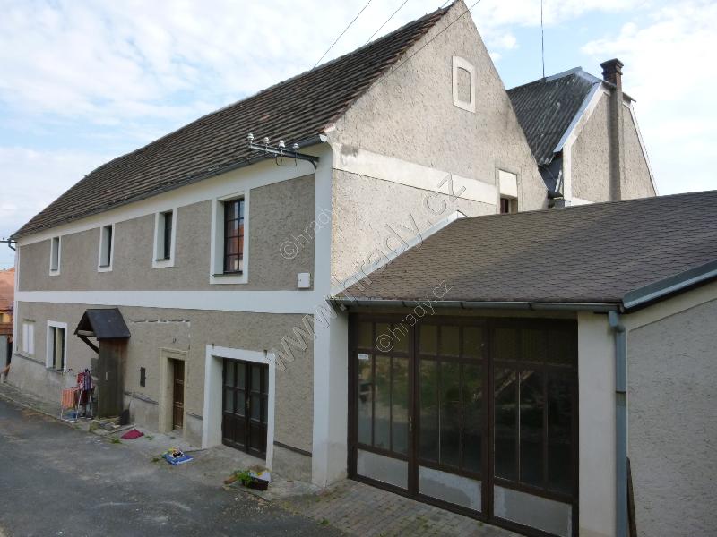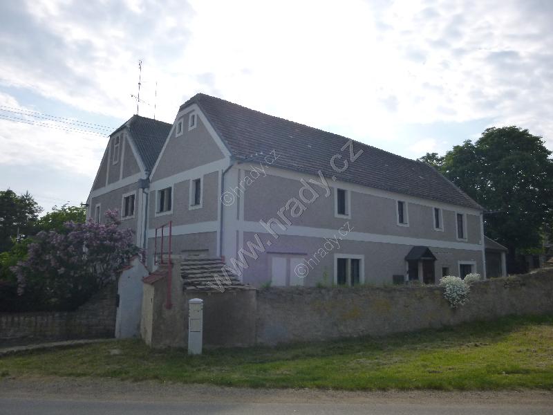Budovu bývalé tvrze (dnes čp. 1 a 3) od jihu