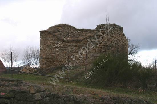 Celkový pohled na zbytky věže tvrze od jihovýchodu