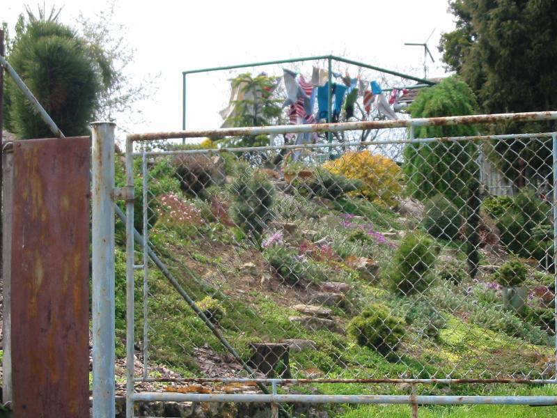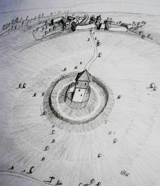 pohled od severu na nejsevernější nároží tvrziště / za sloupem/
