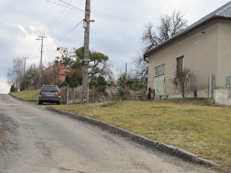 pohled od návsi na lokalitu Na pustých (za stromy)