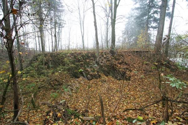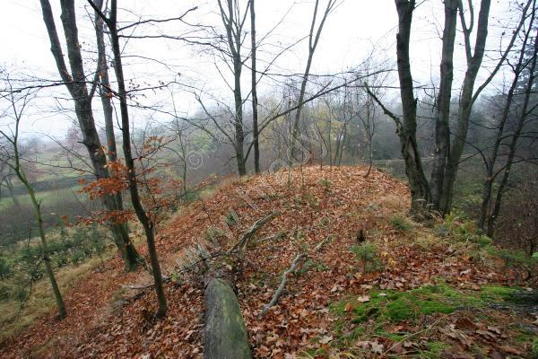 Celkový pohled na tvrziště ze svahu pod hospodářským dvorem
