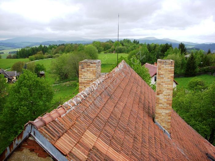 pohled na tvrz z jihozápadu, vpopředí boží muka