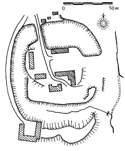 Tvrziště bylo zastavěno řadou budov. Jedna z nich je na snímku.