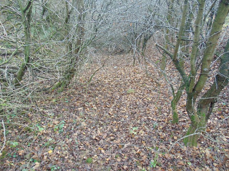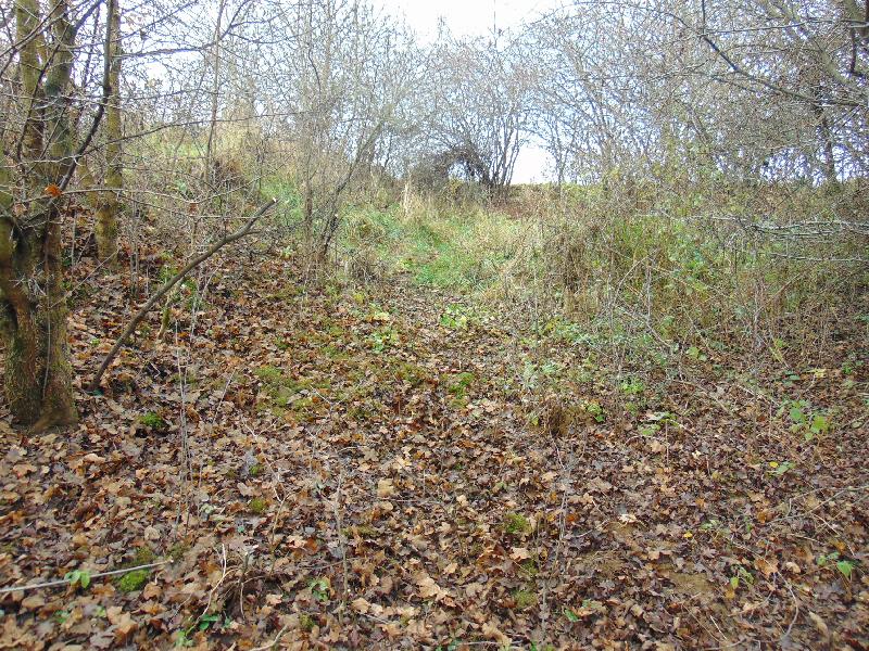 Sv. příkop tvořený přírodním žlabem /od severu/, tvrz je vpravo