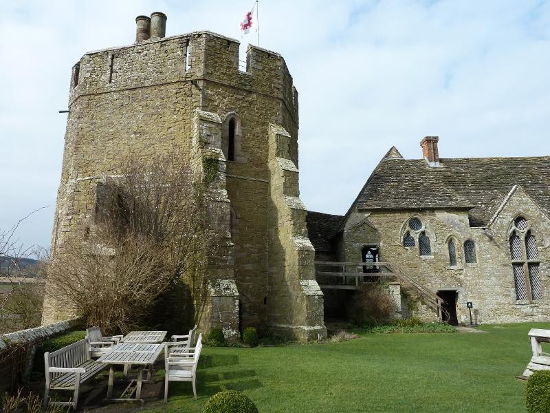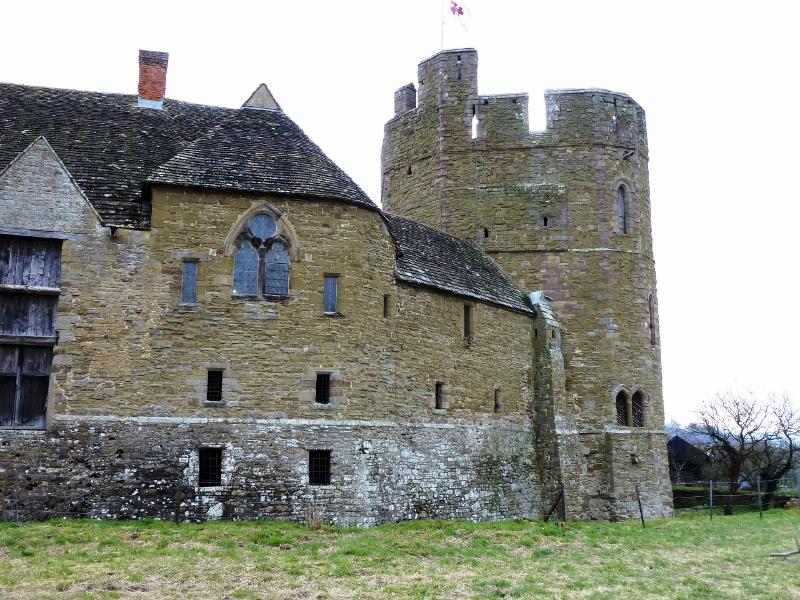 Nádvorní průčelí tvrze. Napravo je velký sál s vysokými okny, za ním palác a úplně vzadu jižní věž.