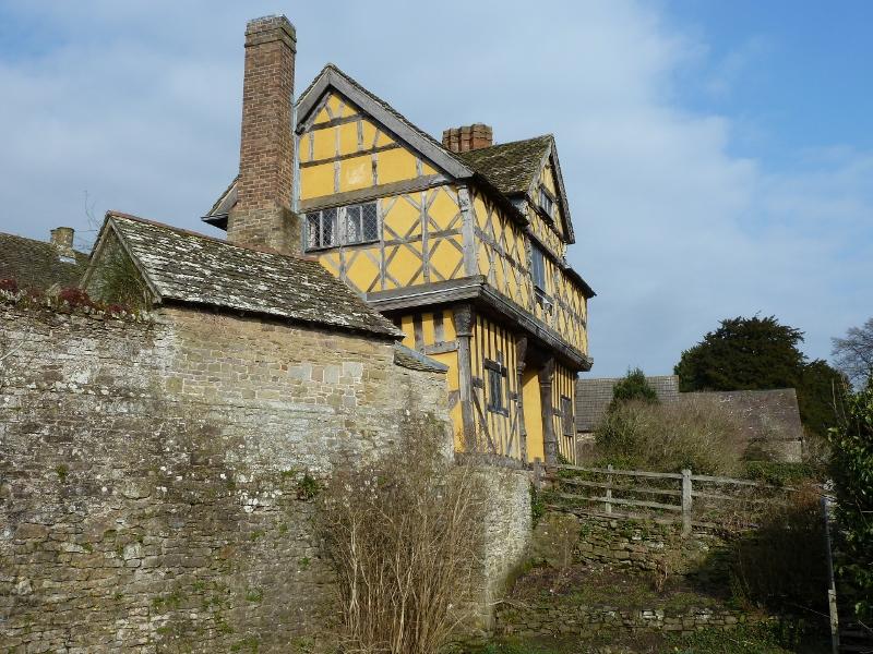 Pohled na tvrz od jihu. Na popředí je jižní věž. Dřevěný branský dům z pol. 17 stol. stojí napravo vzadu.