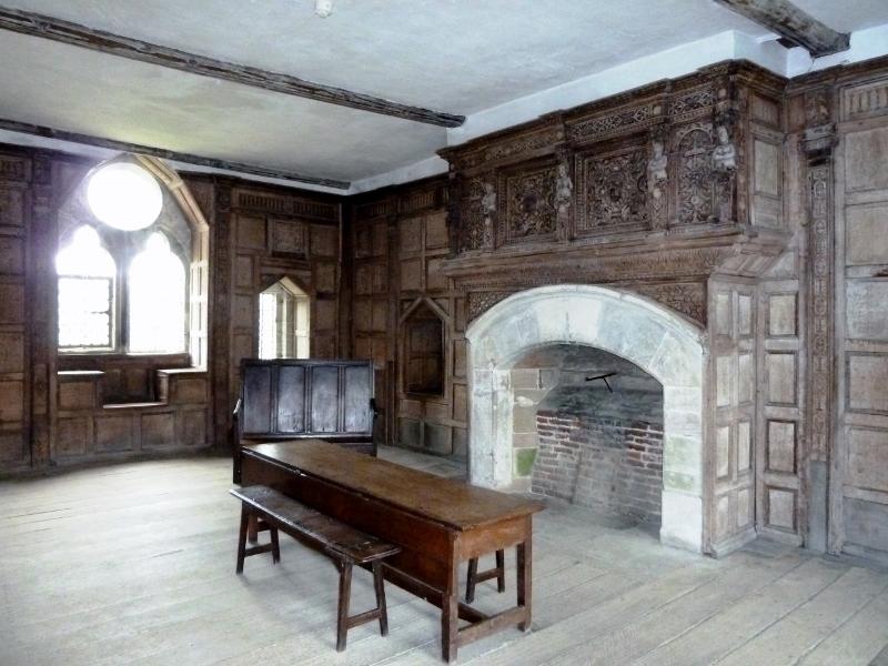 Interiér paláce v 1 patře. Táflování a krb jsou ze 17 stol.