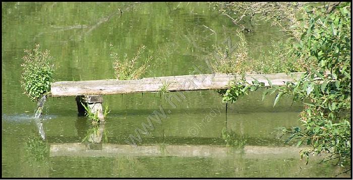 Západní rybník, voda proudí přes tvrziště z výše položeného východního rybníčku