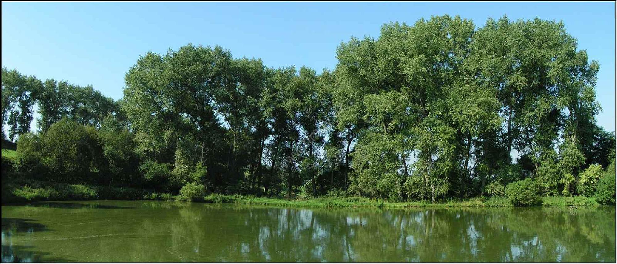 Západní břeh západního rybníku - tvrziště máme za zády.