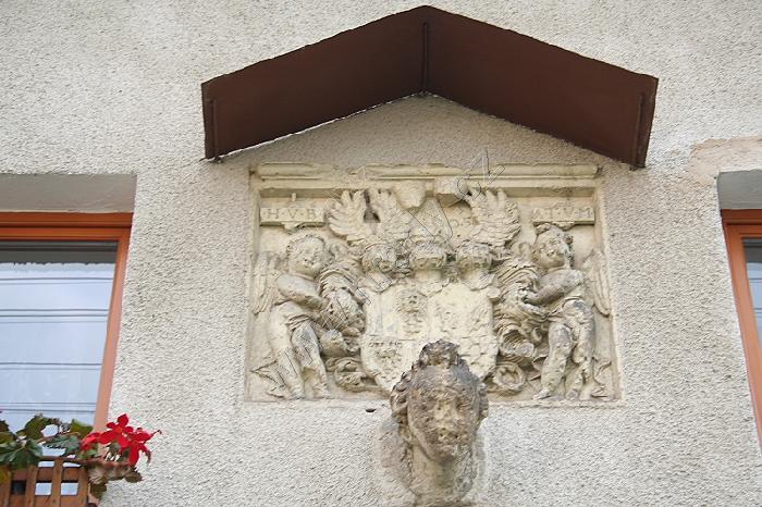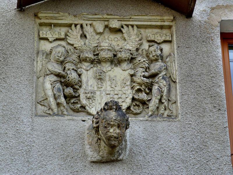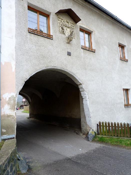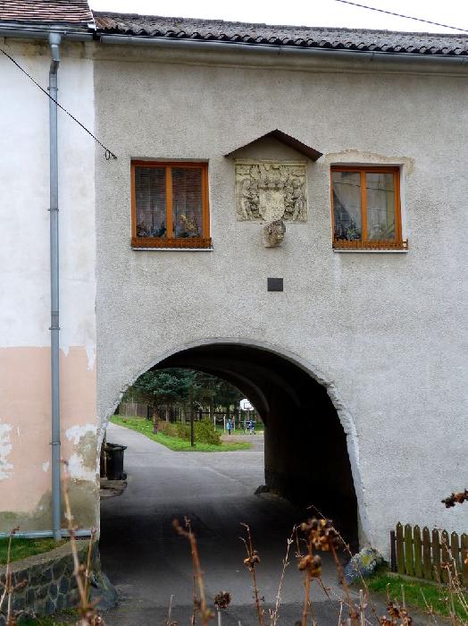Erb nad průjezdem s letopočtem 1605