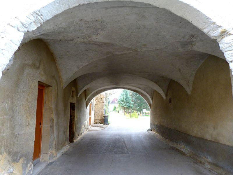 Průjezd a zbytky pavlače z jihu