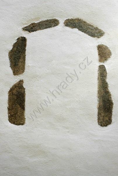 Detail portálku na panskou tribunu v patře západního průčelí kostela sv. Voršily