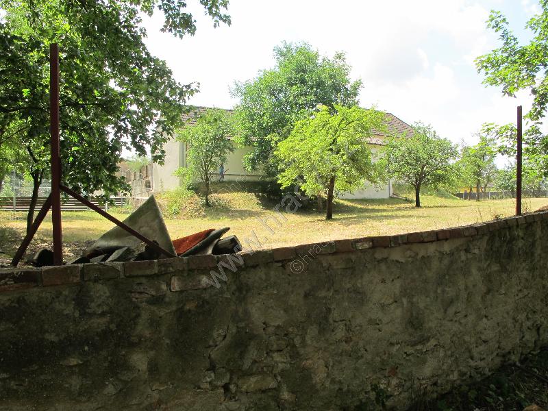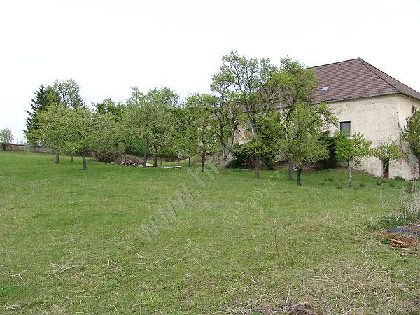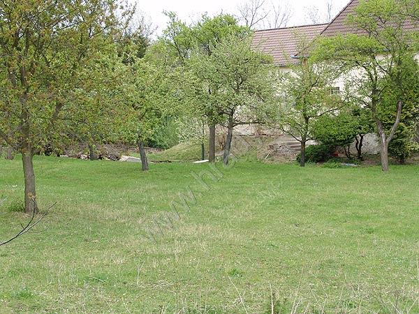 Pohled na tvrziště s pozdější stavbou fary od severozápadu