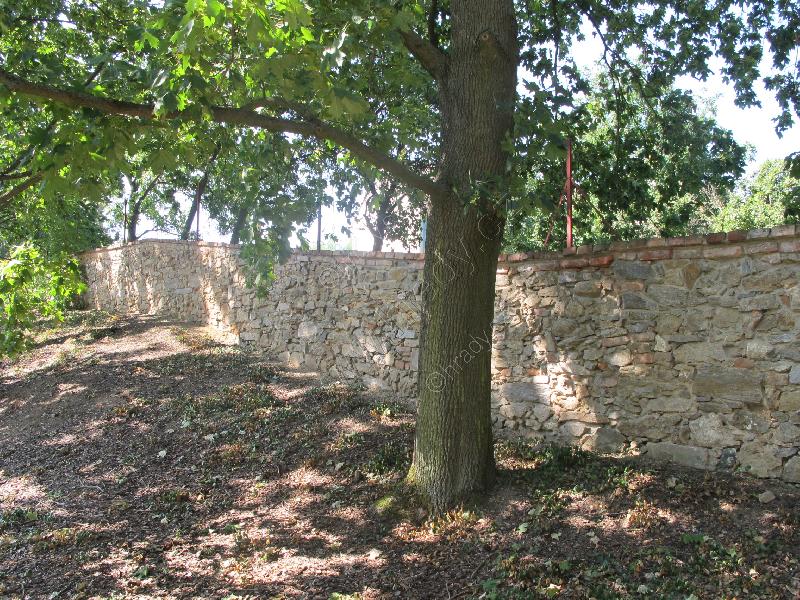 tato ohradní zeď odděluje na východě plochu tvrziště od zámeckého areálu