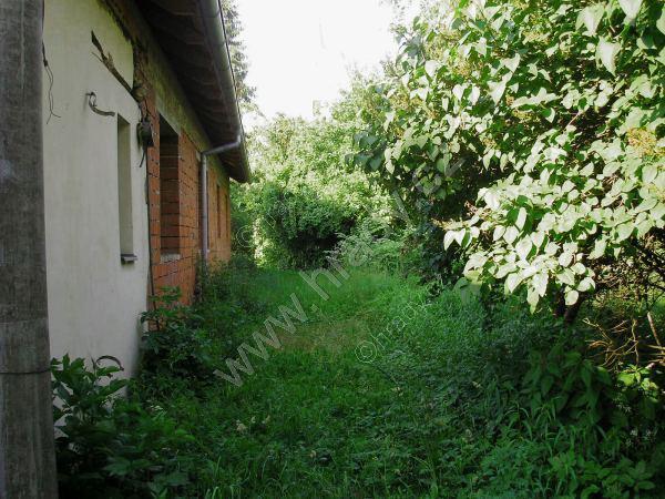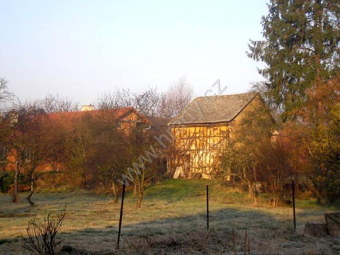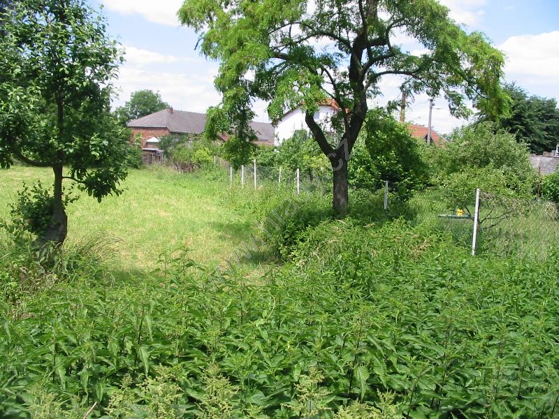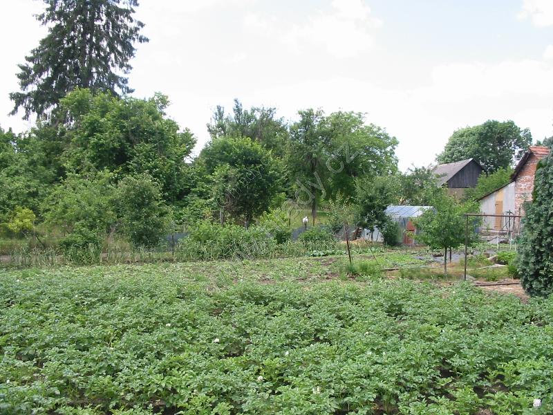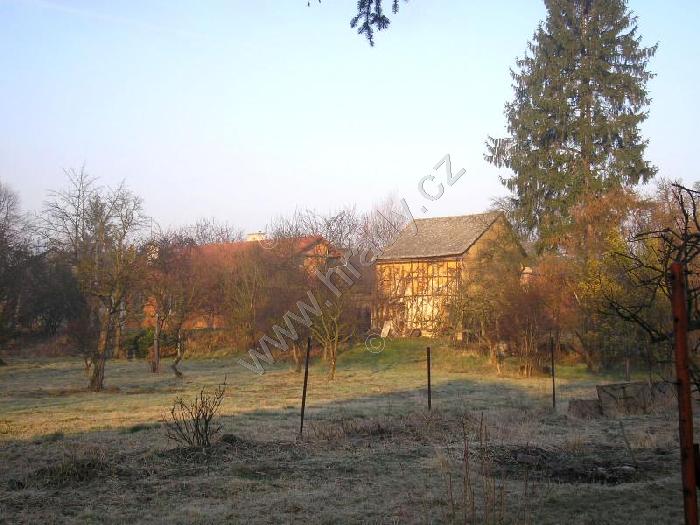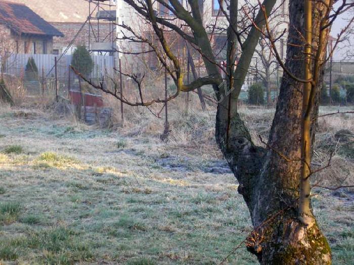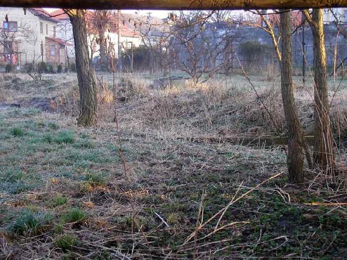 Pohled na místo tvrze od východu / až za záhonem brambor/