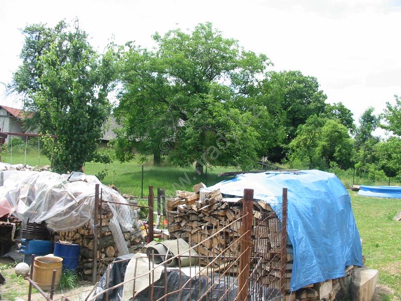 pohled na místo tvrze od jv.,strom s budovou stojí přímo v centru tvrze