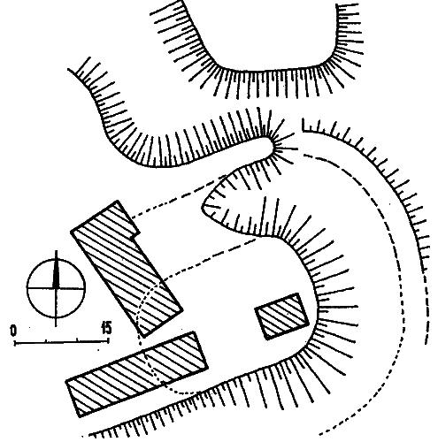 viditelný snižujicí se příkop na vých.straně tvrziště