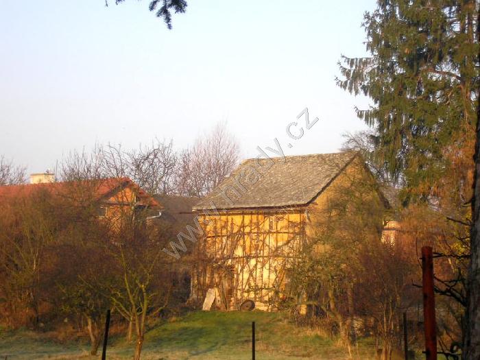 pohled od jihu na budovu,stojící přímo v centru bývalé tvrze