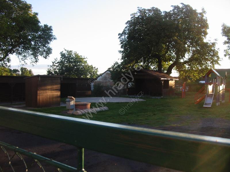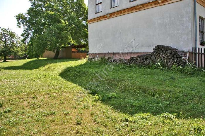 Hrana tvořící sev.hranici tvrziště, dnes ale již uměle dotvořena při stavbě hřiště