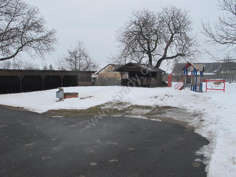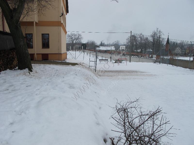 sev.hranice od jihu, vlevo plocha tvrze, vpravo hřiště