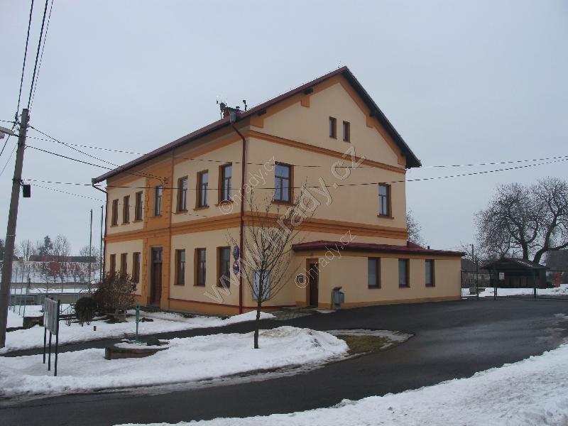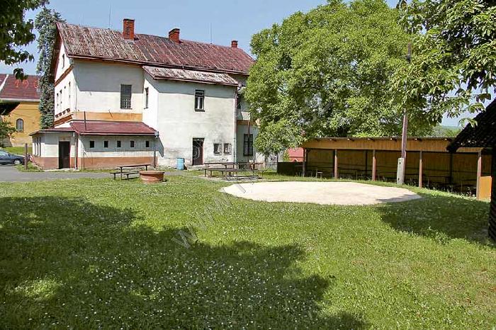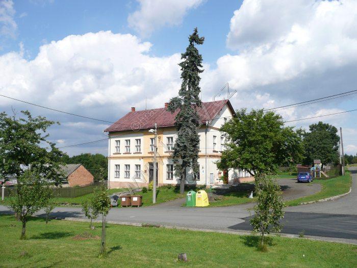 kdysi škola, dnes OÚ s novým "kabátem", stojící na ploše tvrziště