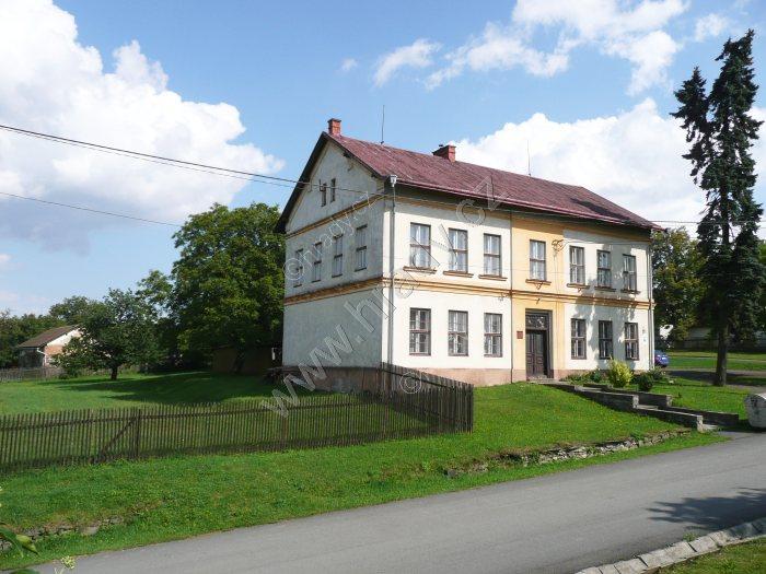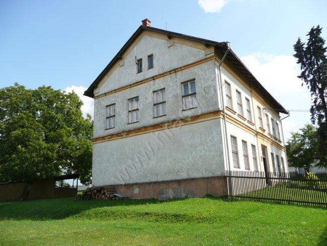 pohled na školu čp. 65 stojící na ploše zaniklého tvrziště