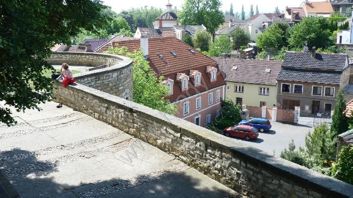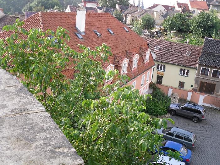 Na nádvoří barokního mlýna je vchod do podzemních chodeb, vedoucích až pod budovy na náměstí