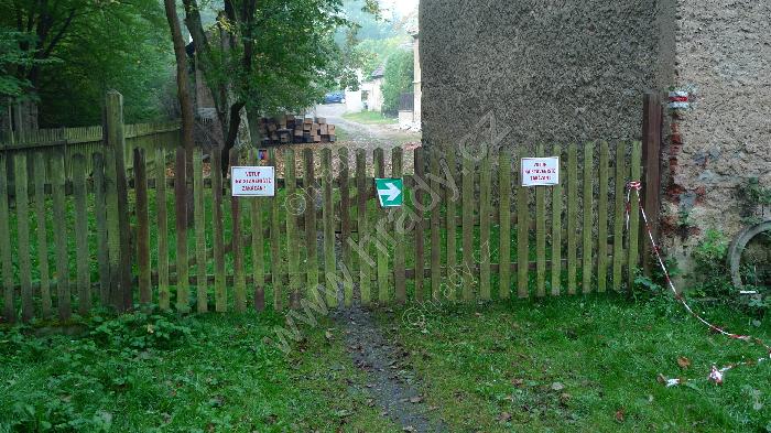 Náhradní cesta nad mlýnem za přechodně uzavřenou cestu přes dvůr.