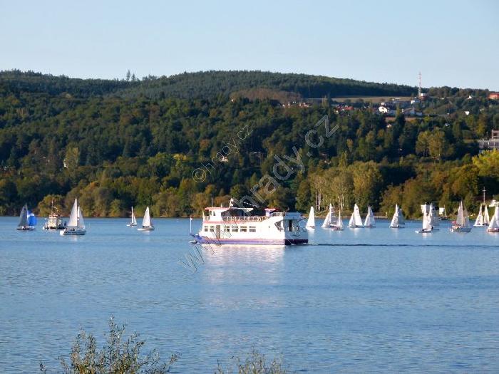 výletní loď mezi hradem Veveří a přehradní hrází