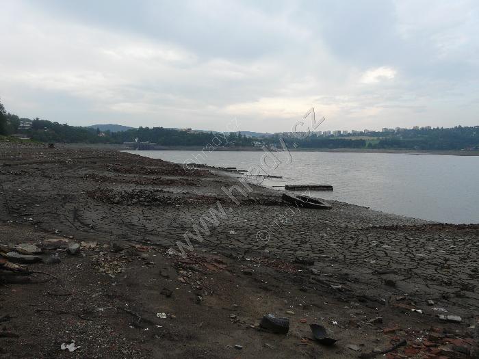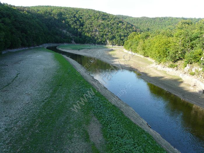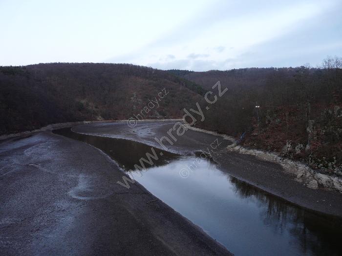 Přehrada za sniženého stavu mezi Veverskou Bytíškou a hradem Veveří