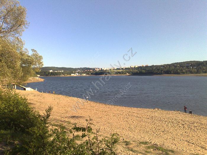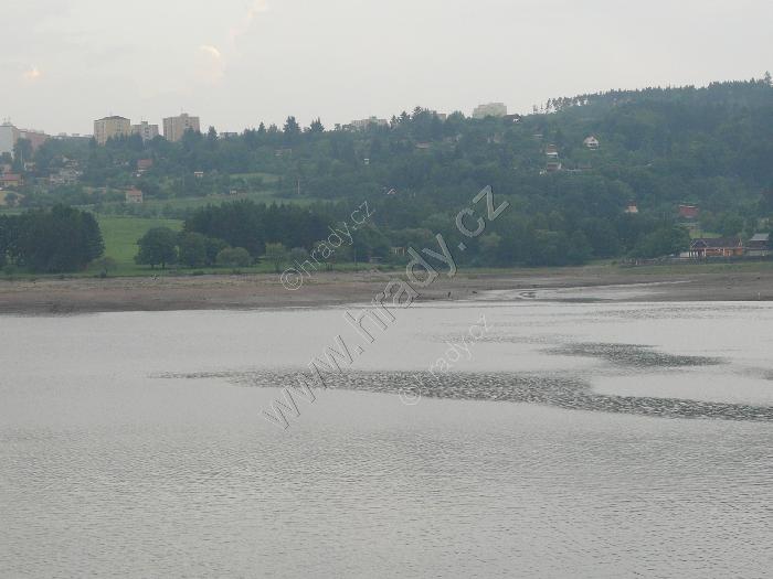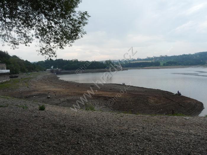 přehrada za sníženého stavu z okolí koupaliště "Na Sokoláku"