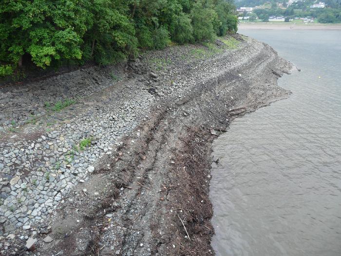 přehrada při sníženém stavu u hráze