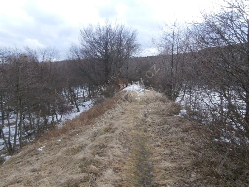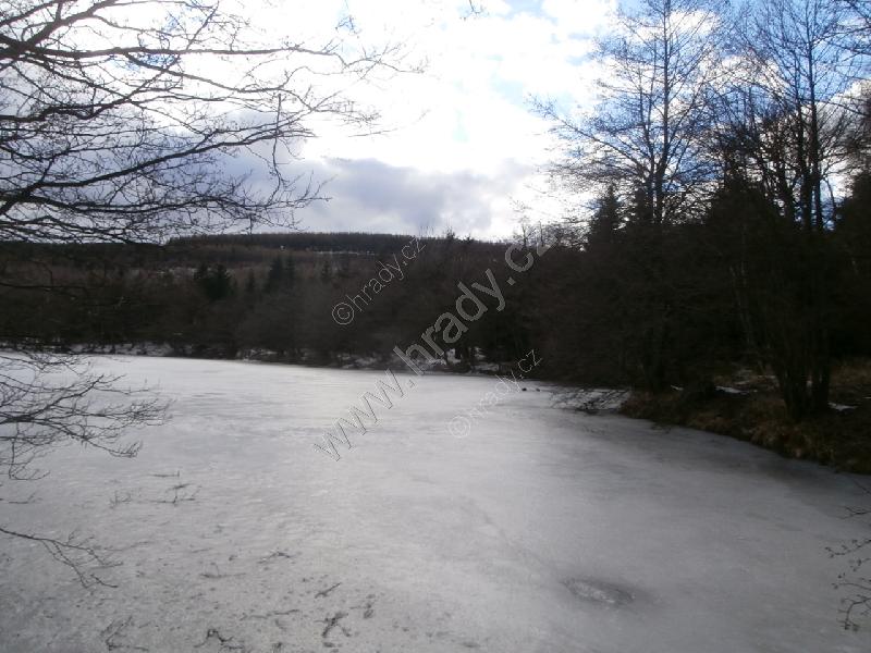 Hráz rybníka.