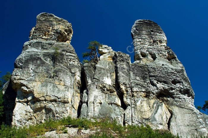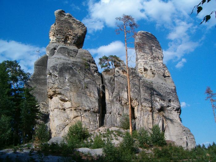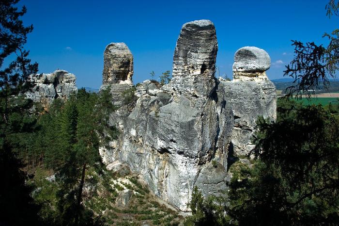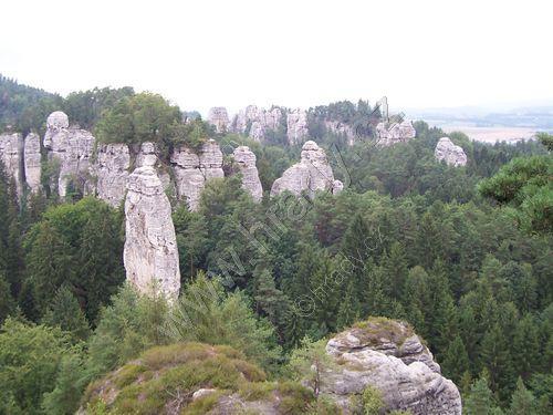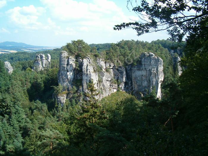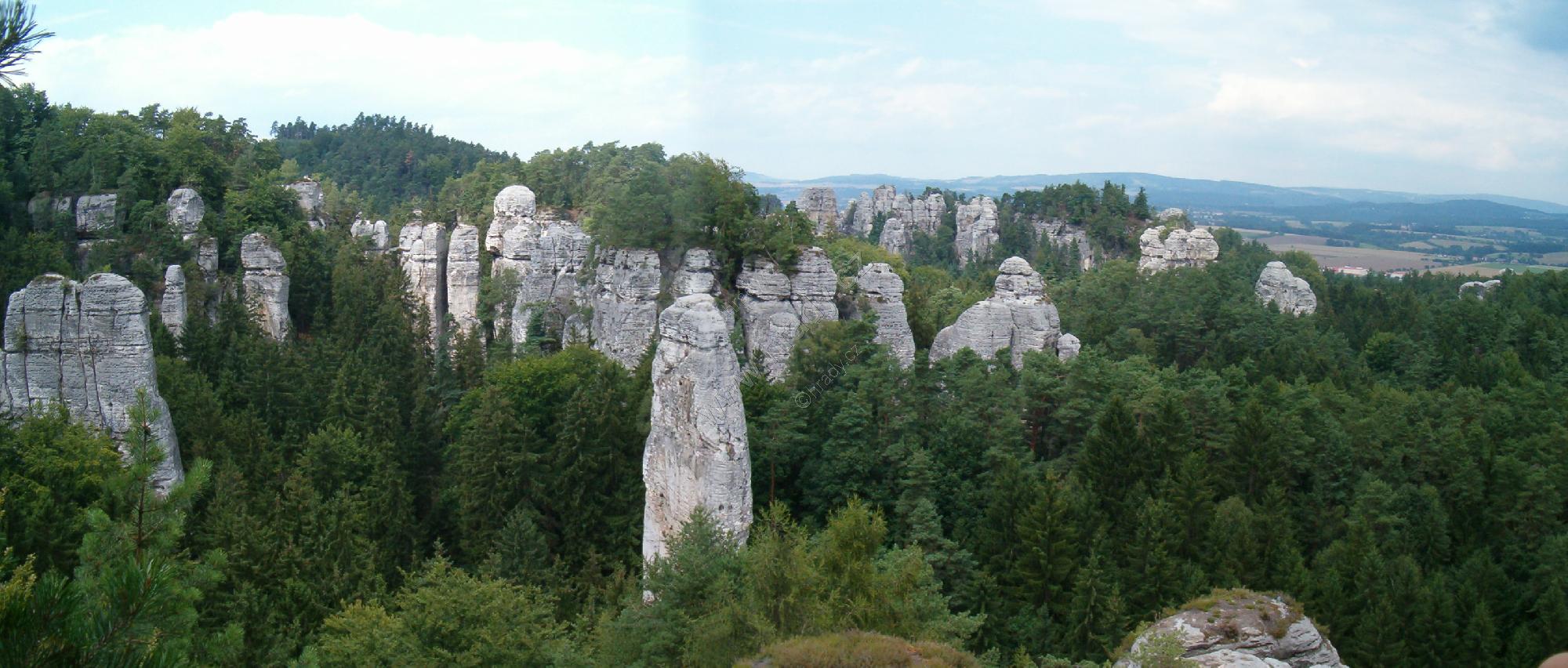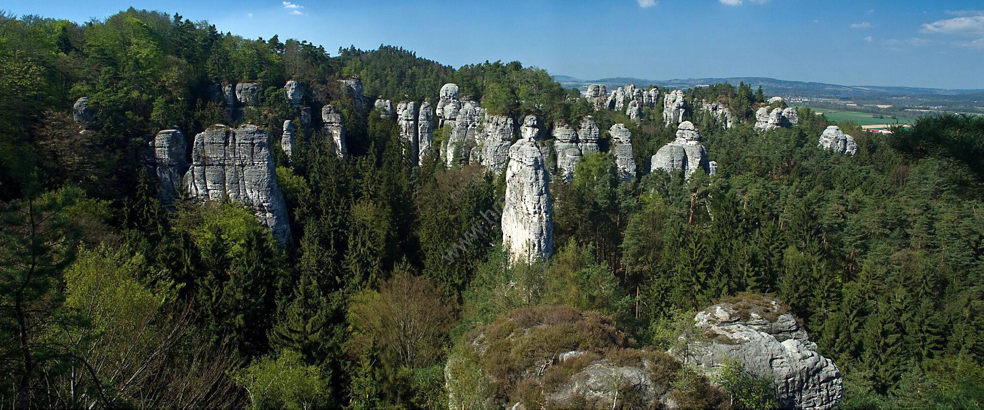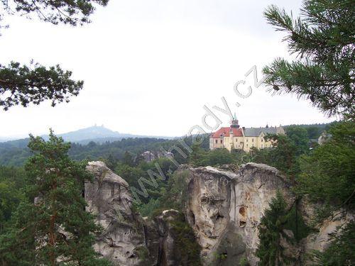 Nádherný pohled z vyhlídky na Hrubou Skálu a Trosky.