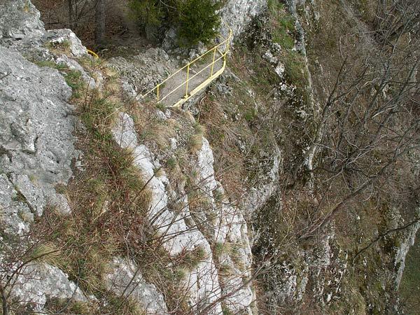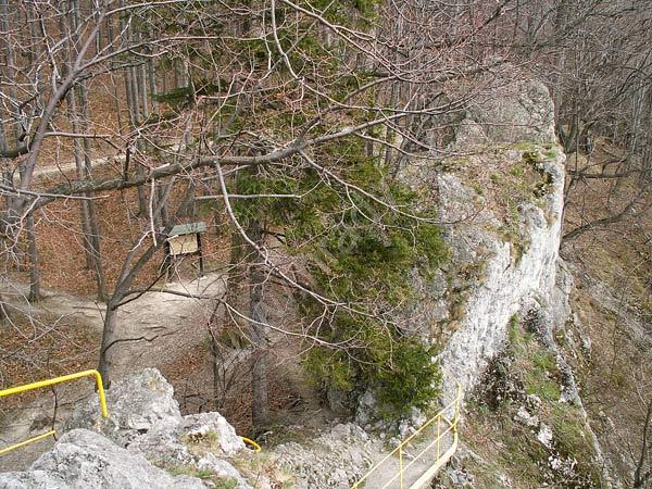 Pohled z můstku na přístupovou cestu, která se nachází cca 50 metrů pod vyhlídkou.