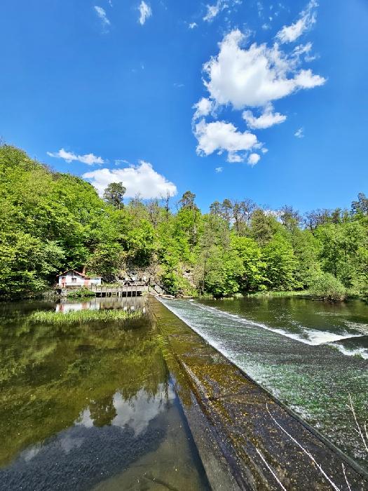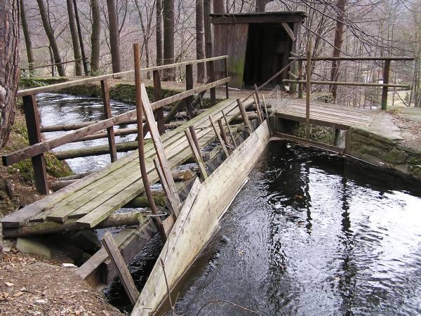 stavidla na řece Moravici, které vhánějí vodu do samého počátku Weisshuhnova kanálu