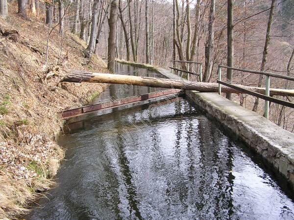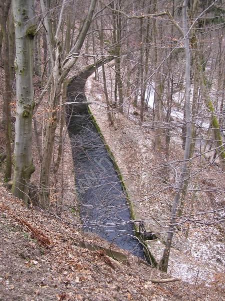 na snímku je patrno, jak vysoko nad údolím Moravice je kanál založen